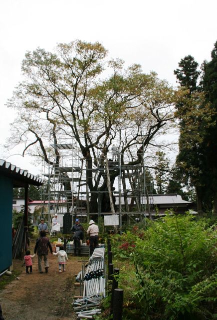 樹齢1200年の老木を元気にしようと、樹木医や地元住民の方々が協力して作業が行われました!!