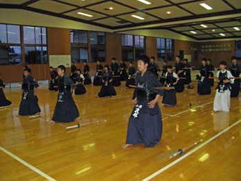 おじゃました夜の稽古でも、大きな声で挨拶し、懸命に竹刀を振る