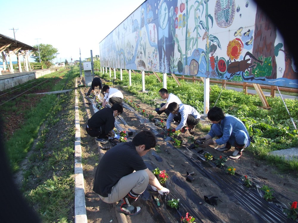 毎年春と秋の年2回、長井駅の花壇整備を行っています。地域の方々から「今年もやってだな〜」と労いの言葉を掛けて頂くこともしばしばあり、活動の励みになっております。長井駅を利用する方々や周辺住民の方々へ和みと癒しの空間を提供するべく、これからも継続して実施していきます。