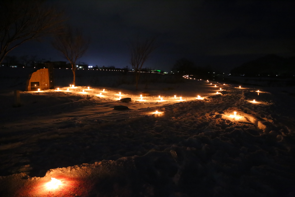 長井青年会議所では最上川フットパスコースにランタンを灯して冬しか出来ない