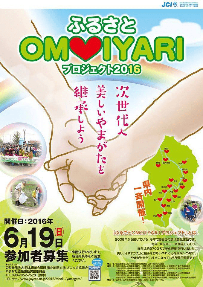 6月19日、山形県内青年会議所で一斉開催する清掃活動「ふるさとOMOIYARIプロジェクト」が開催されました。長井青年会議所では、長井市役所が行っているフラワーボランティアとの合同開催事業『ながいOMOIYARIプロジェクト』として開催し、最上川河川緑地公園を会場に花壇の花植えと隣のバスケットコートのライン引きを行いました。