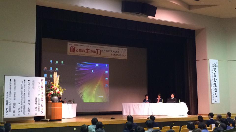 講師にお迎えした九州大学の比良松道一先生、パネリストの竹内氏、平氏、山口氏のおかげで長井西置賜の地に弁当の日、そして芋煮の伝承力を通した食の力、食で育む生きる力を考える一つの機会をご提供できました。