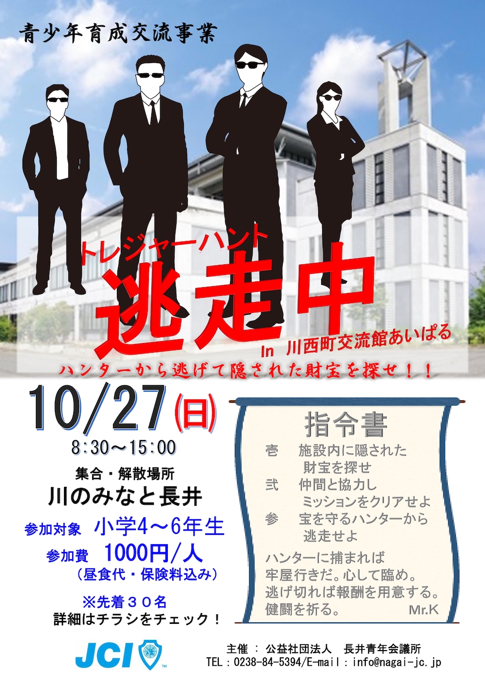 来月10月27日に川西町交流館あいぱるにて「トレジャーハント逃走中」を開催します!
