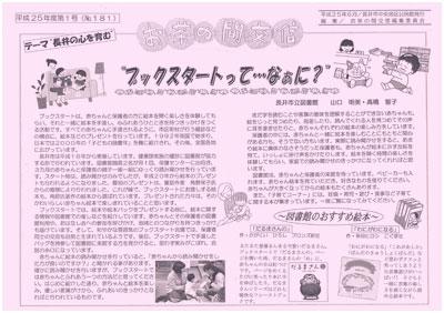 応援し、交流の橋渡しをしてきたお茶の間交信。 平成25年度第1号のNo.181を発行しました。 特集は「ブックスタートって…なぁに?」です。絵本を通して子どもと 保護者の心のふれあいを促すブックスタートについて、長井市立図書館 の方に原稿を寄せていただいています。 「子育てのワンポイントアドバイス」では、本年度長井市で取り組んで いる“幼児特別保育支援サポート事業”を紹介しています。 ぜひご覧ください。 お茶の間交信は保育の専門家を中心とした編集委員と、子育て中の読者 の皆さんで作りあげる情報紙です。ご感想、ご意見をどんどんお寄せ下 さい。メールでも結構です。 お茶の間交信No.181(PDF) 今年度から長井市内の保育施設に「お茶の間交信ポスト」を設置しました。 お茶の間交信がより近い存在になれたらと思っています。皆さんの声を お気軽にお寄せください。 ▽お茶の間交信ポスト ![]() |