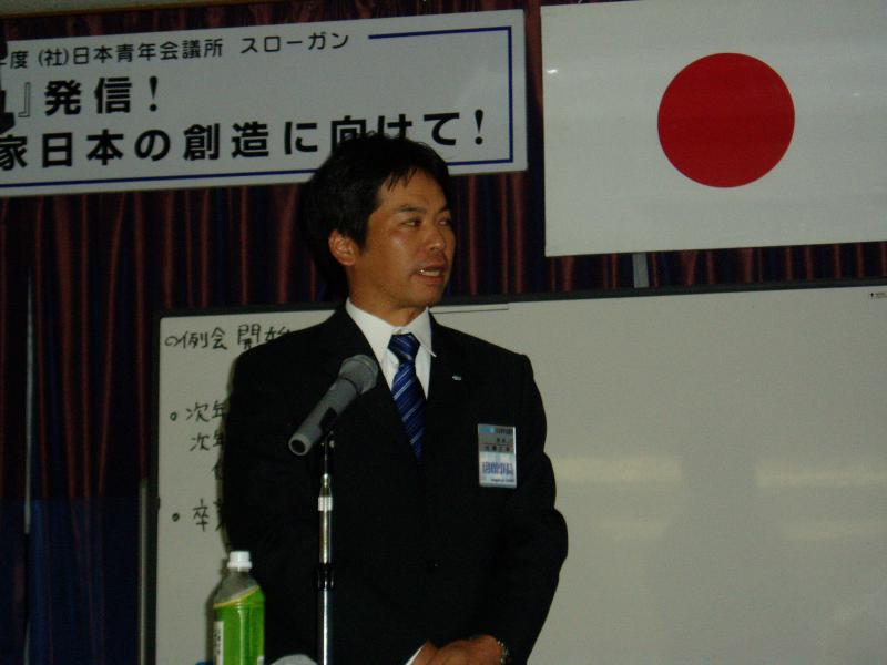 次年度理事長予定者 佐藤正幸君の所信に則った2008年度の事業展開をする為に話して頂いております。長井青年会議所の方向性を理解して次年度に繋がるため真剣にメンバーは話を聞いており、2008年度のスタートを切れたと思います。
