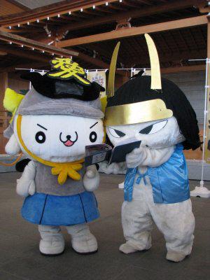 400年の時を越え、それぞれのマスコットキャラクターが米沢の地で再会を果たしました。 全国の皆さんから寄せられた「天地人応援メッセージ」が「いしだみつにゃん」から「かねたん」に伝えられています。名付けて「義と愛の手渡し書簡プロジェクト」です。 今年4月には、三成の軍師・島左近のキャラクター「しまさこにゃん」が「いしだみつにゃん」からの書状を携えて米沢へやってきました。 関連記事:「しまさこにゃん」がやってきた ...もっと詳しく |