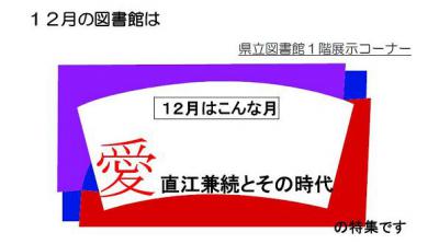 山形県立図書館の1階展示コーナーでは、「12月はこんな月−直江兼続とその時代−」特集が開催中です。