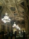 開演前と一幕と二幕の間には、ドリンクとお菓子を頂きます。(ナオゴロのライブと同じです。典型的なヨーロッパのスタイル。) オペラ座もmusik fereiも、とある老舗のお菓子屋さんがドリンクやブルスケッタ、チョコレートを販売しています。 私はここのお菓子屋さんのカフェが大好きでよく行っていますが、とてもウィーンらしいお菓子屋さんだと思います。 音楽を聴くのも疲れるので、幕間にお菓子とドリンクでリフレッシュします。 幕間では、ミュージシャンも買いに来ます。 ウィーンの音楽には、お菓子がないと成り立たないようです。 写真はオペラ座です。 |