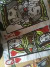 赤い部分は、雑誌の赤い部分を切って貼り絵のようになっているのだそうです。