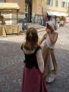 暑いけど、男性に比べたら女性は楽だと最近ものすごく実感するようになりました。 ヨーロッパでレストランやパーティーに行く時。 何を着て行っても許されるのは10代まで。 女性はワンピースとアクセサリーで許されますが、男性はそうはいきません。 気温がゆうに30度を越えていても、男性はジャケット着用。 シャツは半袖でもNGにはならないそうですが、ジャケットは必須で、どうしても暑かったら脱いで手に持っていればOKなのだそうです。 夏場のネクタイは不要らしいです。 あちらに行って私がびっくりしたのは、一人で新聞を持ってカフェに入ってくるような男の人は、カフェでもみんなジャケットを着て来るということ。 とりあえずジャケットを着ていれば、無難なんでしょうね。 女性でよかったです。 チューブトップのワンピースとパメラさんのジュエリーが大活躍した今年の夏。(涼しーい!!!焼けたけど。) もう少し活躍しそうです。 写真は18世紀まつりから。私も経験者であるカラーガードですが、日本と違うのは個人技であるということ。 旗を高く上げて、三回転してキャッチ!!! しかし、男性がやるととにかく高い!!!! |