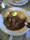 遠出といっても電車で一時間。乗り換え一回で行けます。 途中の駅から急に駅名の看板がふたつになり、まわりの人の言葉がフランス語でなくなりました。ちょっとドイツ語に似ているけど、フランドル語、フランデッシュです。 世の中知らない言葉だらけだなぁとつくづく思います。ちなみにアントワープは北に位置してはいますが、フランス語なのだそうです。 車掌が来たので、フランディシュ聞きたさに興味津々で「ここはベルギーですか?」と尋ねたところ、「ヤッ」っと答えました。 やっぱりドイツ語に似てる!!!心の中で一人で大盛上がりしました。 ブルージュは本当に美しい街でした。街に運河が流れ、船で観光もできます。日本人観光客もたくさんいました。確かに日本人には居心地のよい街です。教会の鐘の音は、音楽みたいに音階がたくさんあって、鐘つき師の学校もあるらしいです。 写真はベルギー料理。シチューに林檎のすりおろしに火をいれたものがそえてありました。デザートのチョコレートムースは絶品でした。やっぱりベルギーチョコはおいしいです。 |