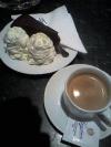 今日は老舗カフェで、念願のザッハートルテを頂きました。写真です。クリームがどっぷりですが、空気含有率が高く、ふわふわ!