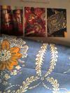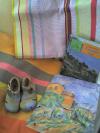 写真は私より帰国が速かったお土産たち。航空便は速いです。生地はカタロニアンファブリック。早速これで椅子の張り替えをしました。