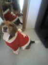 あの人間みたいな表情の鳩の事が一日頭から離れませんでした。そして、音楽では命は救えないという高い壁にぶち当たり、広い砂漠にぽーんと投げ出されたような心境になりました。ある日突然、助けを求めて飛び込んできた鳩に、何か深い意味合いがありそうな気がしてなりません。鳩さん、また大空を飛んでね。 一方、野性味を失いつつ日一日と退化しているであろう犬のミーナ。皮肉にも羽毛布団がお気に入りです。今年もサンタの衣装でおめかし中。皆様へ素敵なクリスマスが訪れますように。 尚美ミーナより