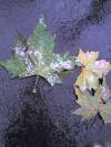 南国育ちの私は、雪が珍しくて仕方ありません。メープルの葉っぱに降った雪がとてもかわいかったので、思わず撮りました。