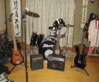 写真のように足の踏み場もないように楽器類が乱雑いてます。年末だし、しばらく使う予定もないのでそろそろかたずけようかな〜。あ〜〜バスドラのペダルが妙にむなし〜〜〜。