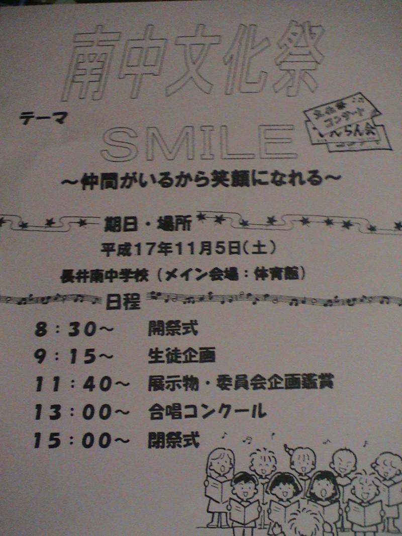 11月5日長井南中の文化祭があります。プログラムは、写真の通りになります。