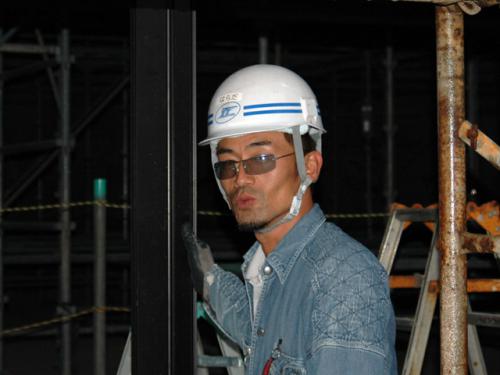 この道32年の大ベテランです。 今回の工事ではサッシの取付け部門の責任者を担当しています。 木造建築の場合とは異なり、鉄筋コンクリートなどの建築物では、サッシの取付けがその後の内装や外装作業の定規(基準)の役割を果たす、まさに責任重大な専門性の高い部門と言えます。 これが決まらないことには次の工程が進まないため、時々現場では他の部門を担当する業者の人たちから「こっち先にやってよ」なんて催促されることも多いのだとか。 墨(現場の基準となる線)に合わせて、正確にサッシを溶接していきます。 今回の現場では合計60ヶ所以上ものサッシ取付けがあり、現場が思い通りに進まないときには大変ですが、サッシが正確にピッタリハマった時は何とも言えず爽快な気分になるのだそうです。 サッシの取付けが始まると、現場もいよいよ仕上げ段階といった様相になってきます。 ▲墨に合わせて正確に溶接していきます。 ...もっと詳しく |