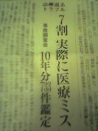 【治療巡るトラブル/7割実際に医療ミス/事故調査会10年分733件鑑定】 ■治療結果の説明を納得できないとする患者側と医療機関の間でトラブルになったケ ースのうち、7割以上で、実際に医師や看護師による医療ミスと鑑定されたことが、 ベテラン医師らでつくる「医療事故調査会」のまとめで分かった。 ▲とても複雑な気持ちにさせる調査結果ですね。治療を巡るトラブルの七割が実際に 医療ミスだったということで、これまで情報の非対称性によってなかなか医療機関側 に文句が言えない状況でしたが、おかしいと感じたらまずは言うことが大事だと思い ます。 ━━━━━━━━━━━━━━━━━━━━━ +++『社会保障ニュース』編集室+++本部 http://plaza.rakuten.co.jp/socialsecurity/ ※リンク生成されない場合はアドレスバーに コピペしてください。 ━━━━━━━━━━━━━━━━━━━━━  |