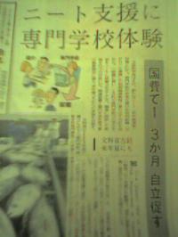 【ニート支援に専門学校体験/国費で1〜3ヶ月自立促す/文科省方針来年夏にも】 ■文部科学省は8日、新たなニート(若年無業者)対策として、専門学校や若者支援の非 営利組織(NPO)と連携した短期職業教育に乗り出す方針を決めた。「就職に強い」とさ れる専門学校での学生生活をニートに経験させることで、職業に直結した教育を行う のが狙いだ。関連経費2億円を来年度予算の概算要求に盛り、来年夏ごろからの実施を 目指す。 ▲ニートに欠けているのは対人コミュニケーションとよく言われているので、専門学 校での集団生活はその改善に役立ちそうですね。 ━━━━━━━━━━━━━━━━━━━━━ +++『社会保障ニュース』編集室+++本部 http://plaza.rakuten.co.jp/socialsecurity/ ※リンク生成されない場合はアドレスバーに コピペしてください。 ━━━━━━━━━━━━━━━━━━━━━  |
