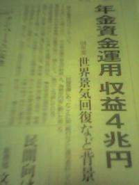 【年金資金運用収益4兆円/04年度 世界景気回復など背景】 ■厚生労働省は14日、2004年度の年金積立金の運用結果を社会保障審議会年金資金運 用分科会に報告した。同年度の収益額は3兆9588億円で、賃金上昇率を差し引いた実質 的な利回りは2.94%となった。 ▲2004年の年金改革で、144兆円ある年金積立金を年金給付としてとり崩していくこと になりましたから、景気回復による株価上昇で、少しでも積立金が増えてくれれば、 それだけ若い世代の負担が軽くなるわけで、株価はできればこのまま上昇していって くれることを願ってやみません。 ━━━━━━━━━━━━━━━━━━━━━ +++『社会保障ニュース』編集室+++本部 http://plaza.rakuten.co.jp/socialsecurity/ ※リンク生成されない場合はアドレスバーに コピペしてください。 ━━━━━━━━━━━━━━━━━━━━━  |