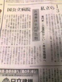 ◆医療事故が疑われるケースについて、1年間(2004年10月〜昨年9月)の国公立系病院の平均報告件数は、私立病院の約3分の1だったことが財団法人「日本医療機能評価機構」のまとめで分かった。報告を義務付けられた病院数は、国公立系が私立の5倍近くなのに、全報告の4割以上を私立病院からの報告が占めた。専門家は「医療事