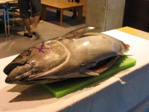 マグロの解体実演です。昨年某パーティーでの一こまですが、ものの10分ほどで刺身サクに…あざやかなな包丁捌は感動もんでした。その場でほほ肉をはじめていただきましたが、脂がのってグッドでしたね。そういえば豚トロもほほ肉じゃなかったっけ?
