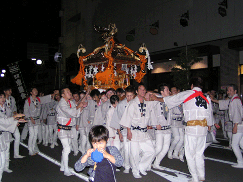 祭りは、旧県立上山農業高校の文化祭イベントの一つとして開いたのが始まりとか、 祭りには、小泉純一郎かかしや環境問題をテーマに、空のペットボトルで造った「ぼくらのゴジラワールドかかし」、中には、景気回復を願って「不況を吹き飛ばす百万円札かかし」が登場し人目を引いていました。写真は、ヤワラちゃんかかしだってよ?どう見ても似てないよ〜。 |