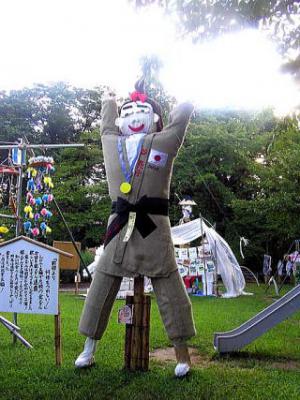 最近、かかしというものをトンと見かけなくなりましたが、上山市ではユニークな「かみのやま温泉全国かかし祭り」このほど開催されました。ワタクシも、BT練習の帰りに見物してきましたが、世相を反映したかかしや伝統かかし、広告かかしなど市内外から約二百体が出品された、それは圧巻でした。