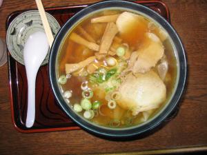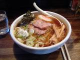 スープのみならず麺も昔風の麺で、ラーメンというよりか支那そばそのものでした。チャーシューもかなり煮込んだとみられやわらかでメンマも「まいう〜」でした。嬉しいのは、スープを別どんぶりでサービスしてくれること、コッテリを注文した客はスープをつぎ足して飲むというシカケになっている。 ただこの店は、おやじ一人でやっているので、お昼時は込み合うので時間をずらした方が賢明かな。 |