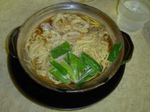 2年前、バウンドテニスのBBSカキコミが縁で、ついに「鍋焼きラーメン・ツァー」が実現。ネット仲間のKENさんの案内で、数多い専門店でも向かったのは須崎市「まゆみの店」、ラーメンの鬼佐野をもうならせたという店だ。壁には、TV取材の写真が立ち並ぶなか、厨房から、スープのうまみを予感させる香りが漂う。 使用する具は、ネギ、ちくわ、生卵といったシンプルなもの。スープはこくがあるが、しつこさはない。めんは歯ごたえを感じさせる細めんで、支那そばを思わせる。 女ご主人の話によると、鍋焼きの基本ルールは「付け合わせの漬け物と土鍋、鳥がらのしょうゆ味」だそうだ。麺をすすってややもしたら、中央に鎮座する卵黄をかき混ぜて食するのがご当地での食し方とレクを受けたあと、一気に立ち向かう。見た目よりアッサリしてイケル、未知との遭遇「まいう〜」でした。 最後に酸味が利いたおしんこを口の中にほおばり「ジ・エンド」、じつに貴重な体験山形からはるばる来たかいがあったというものです。 |
