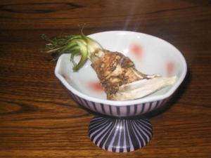 「ねまがりだけ」とは熊笹の旬芽のことで、文字通り熊が生息するような山の高地に生え、他の山菜とは異なり採取はかなり難儀です。笹竹林まで行くのに歩いて1〜2時間はザラ、欲出しすぎて採りすぎると、帰りの山道で荷物の重いこと…捨てようと思ったことも何度か…。竹の子に夢中になってると、目を突く危険性が伴うので、スキーのゴーグル着用しないとヤバイです。また、採取をしていると方向を見失い遭難することがリスクも多いため、山に詳しくない一般の方には無理かもしれません。 そんな苦労を肌身で知ってるだけに、山の幸をいただくときは感謝です。 |