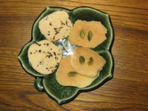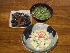 しそ巻き(右の皿)といっても所変わればで、地方によっていろいろな調理法あるようですが、山形の各家庭に伝わる郷土料理は「しその葉」に、胡桃・胡麻・南蛮などが入った甘辛い味噌をしその葉で巻き、揚げたもの。