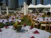 よく見るとわかるんですが、テーブル上に小さな鈴があちこちに。これは新郎新婦に「キスしろー!」ってせがむ合図のためらしい。その他、目薬の容器のようなものに石鹸水が入ったものも。シャボン玉を作って花を添えるみたいな感じです。おもしろいですね。