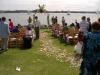結婚の宣誓を誓い合うアーチ(奥)までの通路は花びらで作られます。これは正直いいなーっと思いましたね。バックのサンディエゴ湾もきれい。
