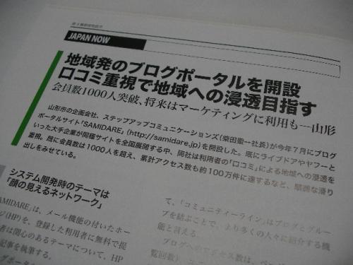地域発のブログポータルを開設、口コミ重視で地域浸透目指す─山形 =会員数1000人突破、将来はマーケティングに利用も= 山形市の企画会社、ステップアップコミュニケーションズ(柴田聖一社長)が今年7月にブログポータルサイト「SAMIDARE」(http://samidare.jp)を開設した。既にライブドアやヤフーといった大手企業が同種サイトを全国展開する中、同社は利用者の「口コミ」による地域への浸透を重視。既に会員数は1000人を超え、累計アクセス数も約100万件に達するなど、順調な滑り出しをみせている。---略--- ※記事内容に興味のある方はこちらまでどうぞ。 ...more |