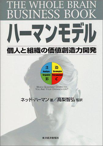 【Dタイプ】は大脳&右脳系ってことのようですね。学生の頃、大脳生理学に興味があったのですが、、、自前MVPにそっくり!?しかもハーマンモデルの演習用紙の表紙の考える人のような挿絵がショッカー田中にそっくり。特に絶壁頭のラインが...とほほ。 ハーマンモデル―個人と組織の価値創造力開発 出版社/著者からの内容紹介 大脳生理学の研究成果をもとに元GE研修所長が開発した、個人およびチームの能力開発と適正配置、人事政策、組織改革のための創造性開発プログラムを紹介する。 内容(「BOOK」データベースより) GE、IBM、P&G、コカコーラ、キヤノン、資生堂など世界のトップ企業で活用され、100万人以上の実績!創造性は科学的に開発できる。元GE経営研修所長が大脳生理学の研究成果をもとに開発した驚異のシステムのすべてを紹介。 ...more |