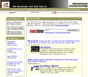 過去にインターネット上に存在していたHTMLファイルを保管しているオンライン図書館。1996年10月以降のWebページを収集しており、2001年10月の公開時点では約100億ページ、サイズでいうと0.1PB(約100,000GB)のデータを保存しています。