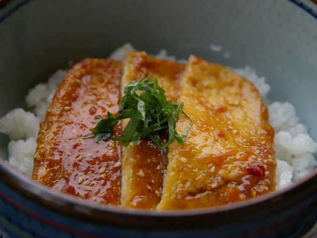 モチモチで香ばしい「地豆でつくった味噌揚げ丼」