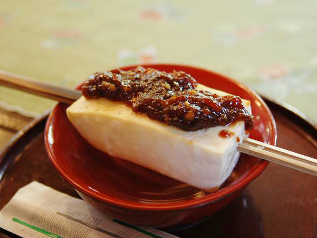炭で焼いたこだわりのお豆腐は、外はアツアツで香ばしく、中はふわふわのしっとり。後味にはしっかり大豆の風味が香ります。
