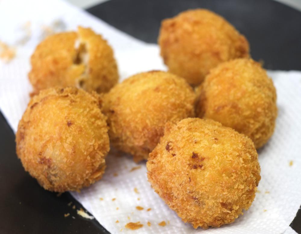 豆乳クリームとつや姫がギュッと詰まって、衣がサクッ!新豆祭限定「豆乳クリームのリゾットコロッケ」です。豆乳でコトコト、食感を残しつつ「つや姫」をリゾット風に。その後、豆乳ペーストを混ぜ込んでなめらかなクリームソースへ・・・乳製品を使わず、豆乳だけでクリームコロッケを仕上げてみました!ぜひご賞味下さい。