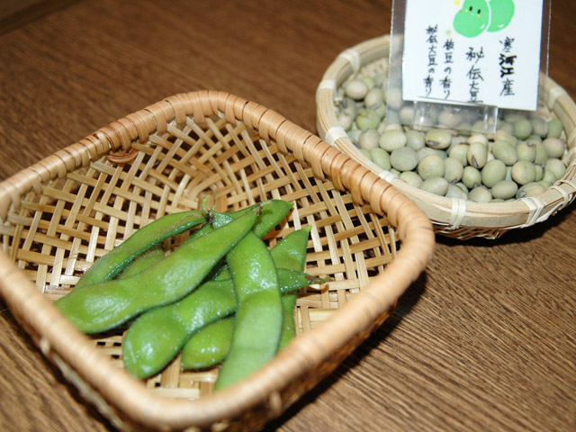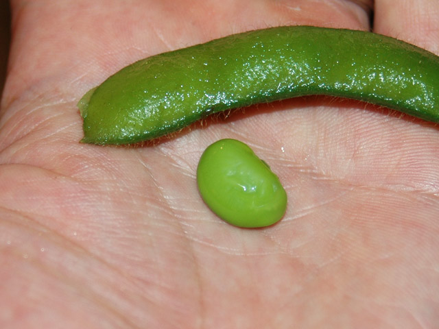 さっそく食べごろの「秘伝豆」をお湯でサッと茹ででいただきました。