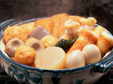 おでん鍋に移して味の含みにくい焼豆腐、こんにゃく、大根、