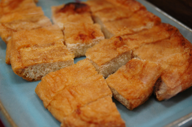 清流庵の手造りあげは、外はこんがり、中はふっくら、、煮ても焼いても美味しいおあげです。