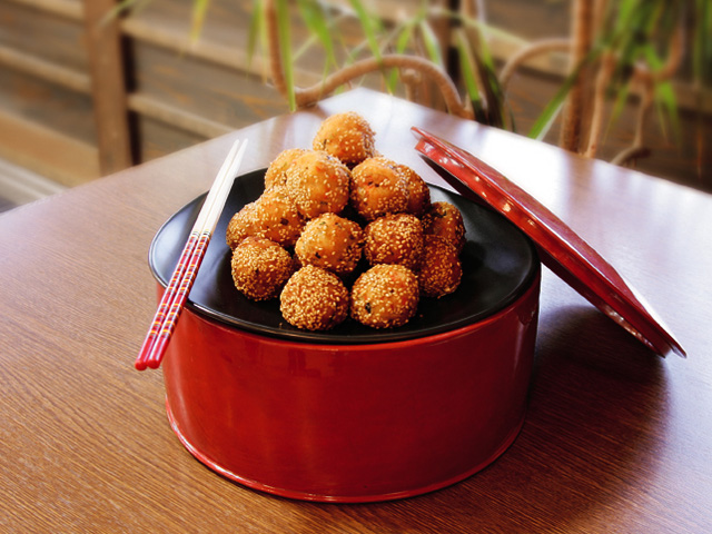 野菜をたっぷり入れて、ごま風味のお団子に仕上げました♪