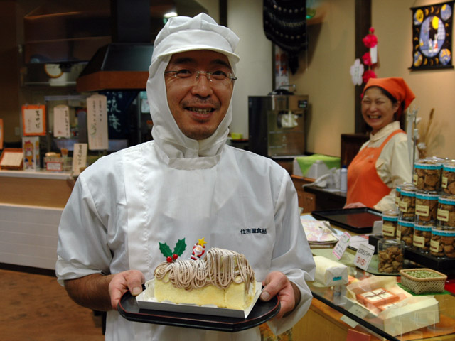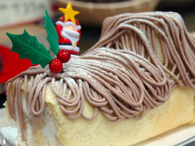 渋皮マロンロールの上に、マロンクリームをたっぷりかけて・・♪
