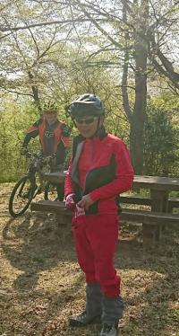 10名が集い、うららかな陽射しの下、時に砂煙を巻き上げながらの爽快ライドとなりました!画像は(今回は)RED MANなH山さん!! |
