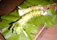 板の上にそのまま茹で上がった蕎麦を置き、そこへ薬味の山葵