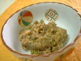 春の味覚ふきのとう。ふきのとう味噌は別名「ばっけみそ」と呼ぶところもあるとか。各家庭で作り方も少しずつ違いますが、写真のレシピはアーモンドの粉を混ぜて作った物。香ばしい風味がして、ご飯の他にライ麦や玄米パンにも合う味です。