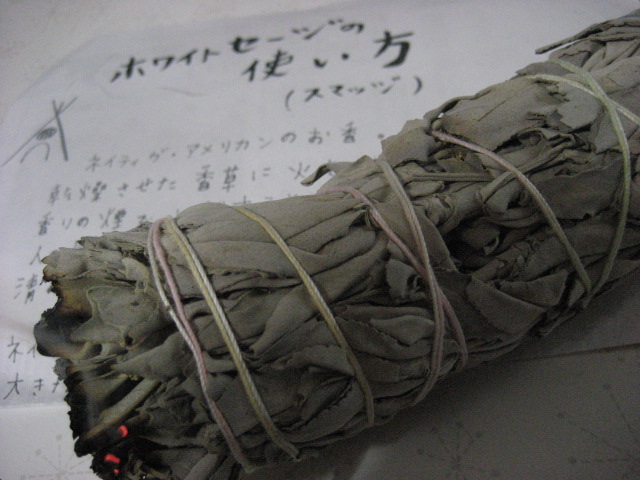 ネイティブ・アメリカンのお香。 乾燥させた香草に火をつけ、 香りの煙でいぶすことによって、 人の感情や思念、 その場自体を清めるのが目的。